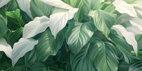 Beautiful leaves of Spathiphyllum cannifolium in the garden back