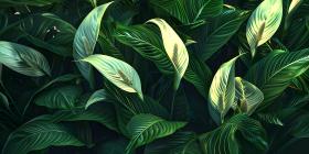 Beautiful leaves of Spathiphyllum cannifolium in the garden back