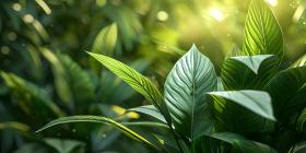 Beautiful leaves of Spathiphyllum cannifolium in the garden back