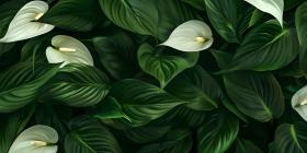 Beautiful leaves of Spathiphyllum cannifolium in the garden back