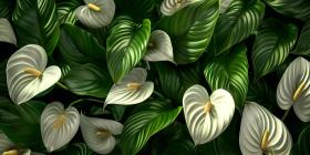 Beautiful leaves of Spathiphyllum cannifolium in the garden back