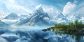 Beautiful Mountains surrounded by water background - Ai Generate