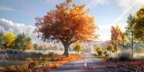 Big tree with colorful leaves on the roadside background - Ai Ge
