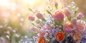 Bouquet of flowers in pastel colors background - Ai Generated