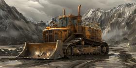 Bulldozer working on a construction site background - Ai Generated