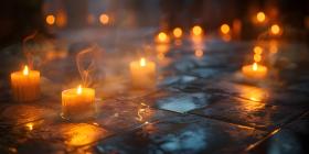 Burning candles on floor background - Ai Generated