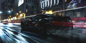 Car on high speed in night city background - Ai Generated
