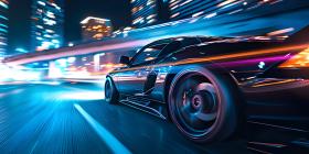 Car on high speed in night city background - Ai Generated