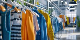 Clothes hanging on a rack in clothing store background - Ai Generated