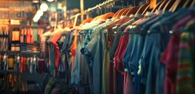 Clothes hanging on a rack in clothing store background - Ai Generated