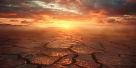 Cracked earth in the desert during sunset background - Ai Generated