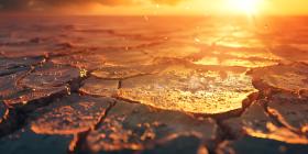 Cracked earth in the desert during sunset background - Ai Generated