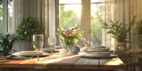 Dining table in a bright dining room background - Ai Generated