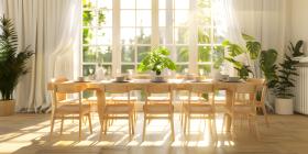 Dining table in a bright dining room background - Ai Generated