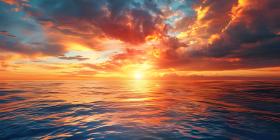 Dramatic Sunset Sky over calm Ocean background - Ai Generated