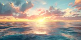 Dramatic Sunset Sky over calm Ocean background - Ai Generated