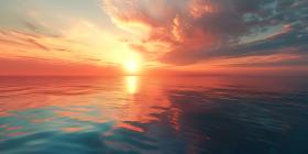 Dramatic Sunset Sky over calm Ocean background - Ai Generated