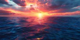 Dramatic Sunset Sky over calm Ocean background - Ai Generated