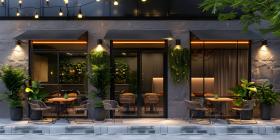 Exterior of a Luxury cafe or lounge area background - Ai Generated