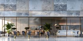 Exterior of a Luxury cafe or lounge area background - Ai Generated