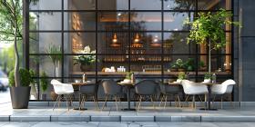 Exterior of a Luxury cafe or lounge area background - Ai Generated