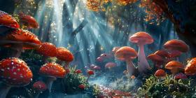 Fairy tale forest with magical Mushrooms background - Ai Generated
