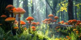 Fairy tale forest with magical Mushrooms background - Ai Generated