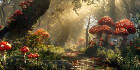 Fairy tale forest with magical Mushrooms background - Ai Generated