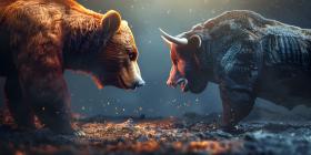 Financial and business Bull vs bear concept trader background - Ai Generated