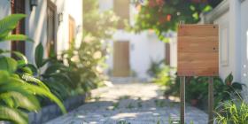 For sale sign board outside house background, House for sale concept - Ai Generated