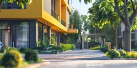 For sale sign board outside house background, House for sale concept - Ai Generated