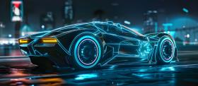 Futuristic Neon Car on dark background with copy space - Ai Generated