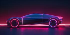 Futuristic Neon Car on dark background with copy space - Ai Generated