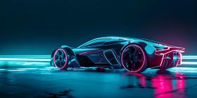 Futuristic Neon Car on dark background with copy space - Ai Generated