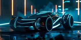Futuristic Neon Car on dark background with copy space - Ai Generated