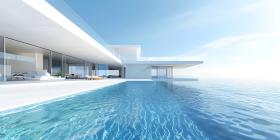 luxury hotel modern villa relaxation swimming pool deck resort chair white swimming pool tropical relax ocean terrace home patio horizontal no people furniture photography exterior residential window empty property color image island illustration spain apartment contemporary estate living mansion sofa spa wealth umbrella sun fashionable flooring large lounge outside paradise recreation roomSimilar Photos