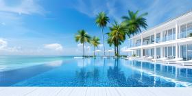 Luxury modern white beach hotel with swimming pool background - Ai Generated