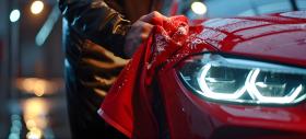 Man hand holding microfiber cloth polishing car background - Ai Generated
