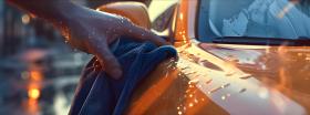 Man hand holding microfiber cloth polishing car background - Ai Generated