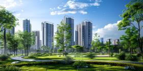 Green lawn with city skyscrapers background - Ai Generated