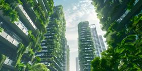 Innovative Green Architecture with Dense Plant Life on Skyscraper background - Ai Generated