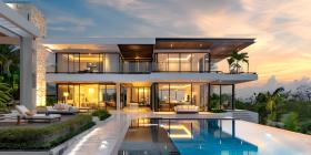 Modern luxury villa exterior in minimal style background - Ai Generated