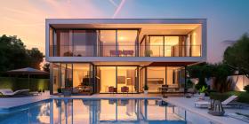 Modern luxury villa exterior in minimal style background - Ai Generated