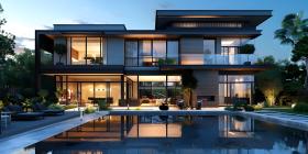 Modern luxury villa exterior in minimal style background - Ai Generated