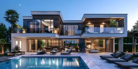 Modern luxury villa exterior in minimal style background - Ai Generated