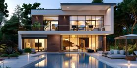 Modern luxury villa exterior in minimal style background - Ai Generated