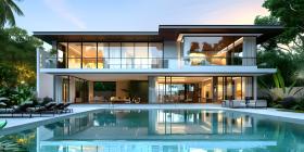Modern luxury villa exterior in minimal style background - Ai Generated