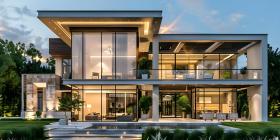Modern luxury villa exterior in minimal style background - Ai Generated