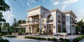 Modern luxury villa exterior in minimal style background - Ai Generated