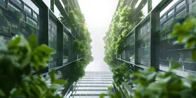Innovative Green Architecture with Dense Plant Life on Skyscraper background - Ai Generated